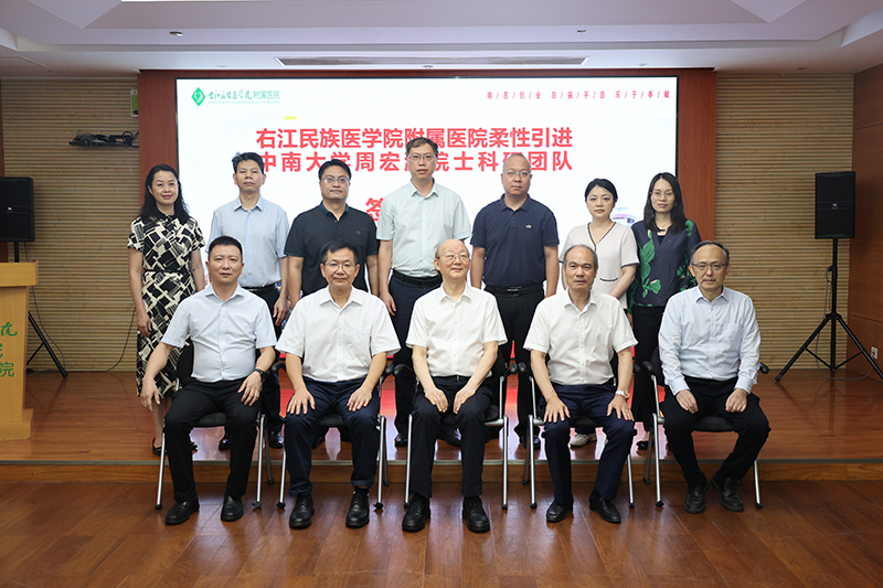 正值中国共产党成立102周年之际,7月1日—2日,中南大学周宏灏院士率领其科研专家团队一行4人,莅临附属医院(临床医学院)开展高水平学术合作交流,并正式签约进驻附属医院(临床医学院),为推动学校和医院的一流学科建设、高层次人才队伍培养、科技成果转化、老区医疗卫生事业发展注入巨大的能动效能,更好地为桂滇黔三省交界区各族群众提供更加优质、高端的医疗服务。学校党委副书记、校长李雪斌和附属医院(临床医学院)党委林栩书记等医院领导出席签约仪式并陪同调研。