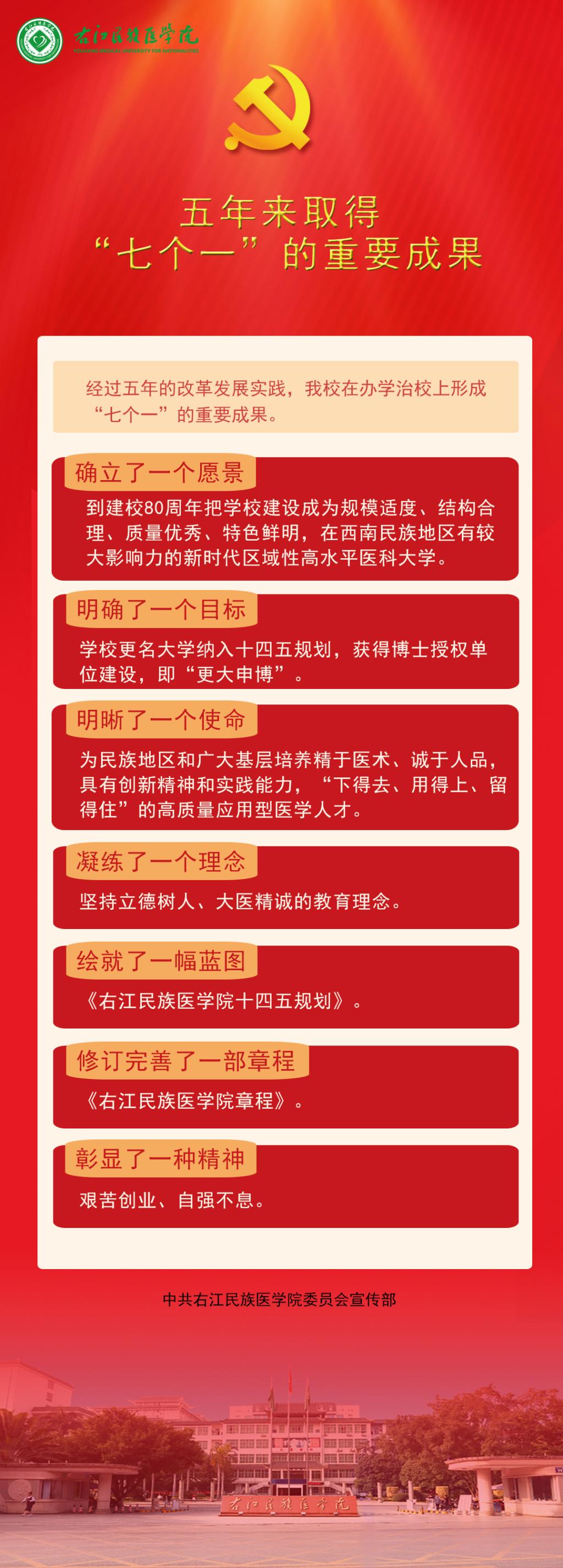 经过五年的改革发展实践,beat365在办学治校上形成“七个一”的重要成果。确立了一个愿景:到建校80周年把学校建设成为规模适度、结构合理、质量优秀、特色鲜明,在西南民族地区有较大影响力的新时代区域性高水平医科大学。明确了一个目标:学校更名大学纳入“十四五”规划,获得博士授权单位建设,即“更大申博”。明晰了一个使命:为民族地区和广大基层培养精于医术、诚于人品,具有创新精神和实践能力,“下得去、用得上、留得住”的高质量应用型医学人才。凝练了一个理念:坚持立德树人、大医精诚的教育理念。绘就了一幅蓝图:《beat365英国官方网站“十四五”规划》。修订完善了一部章程:《beat365英国官方网站章程》。彰显了一种精神:艰苦创业、自强不息。