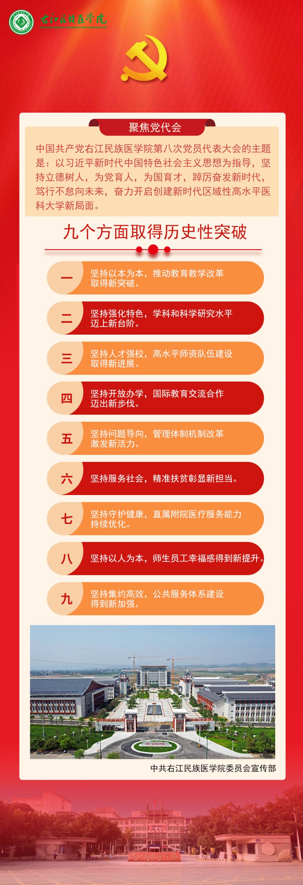 beat365英国官方网站第七次党代会以来的五年,是踔厉奋发、勇毅前行的五年。学校党委认真贯彻落实党的教育方针和国家重大战略部署,团结带领全校师生弘扬艰苦创业、自强不息的“右医精神”,抢抓“更大申博”发展机遇,积极应对困难挑战,担当作为、团结奋斗,在奋力推进新时代区域性高水平医科大学建设上创造出极不平凡的业绩。