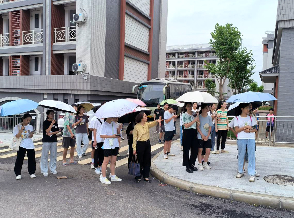来到百东校区,校区依山就势,在风貌塑造上体现民族元素、凸显园林式风格。同学们看着富有设计感的教学楼、大气庄重的图书馆、错落有致的宿舍大楼、色泽鲜艳的游步道,对学校的环境、大楼、设施赞不绝口,楼堂步道间成了大家合影的最佳场所。