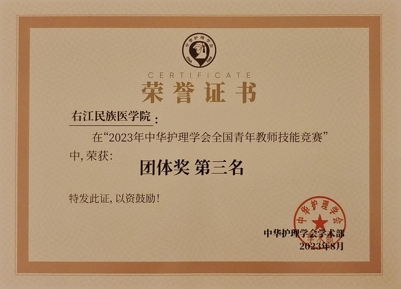 8月22日,2023年全国护理本科院校青年教师临床技能竞赛落下帷幕,由beat365护理学院教师李秋萍、周汉京以及beat365英国官方网站附属医院的兼职教师李坚硕组成的代表队获得团体奖第三名,其中李坚硕获得CPR项目个人奖第二名。