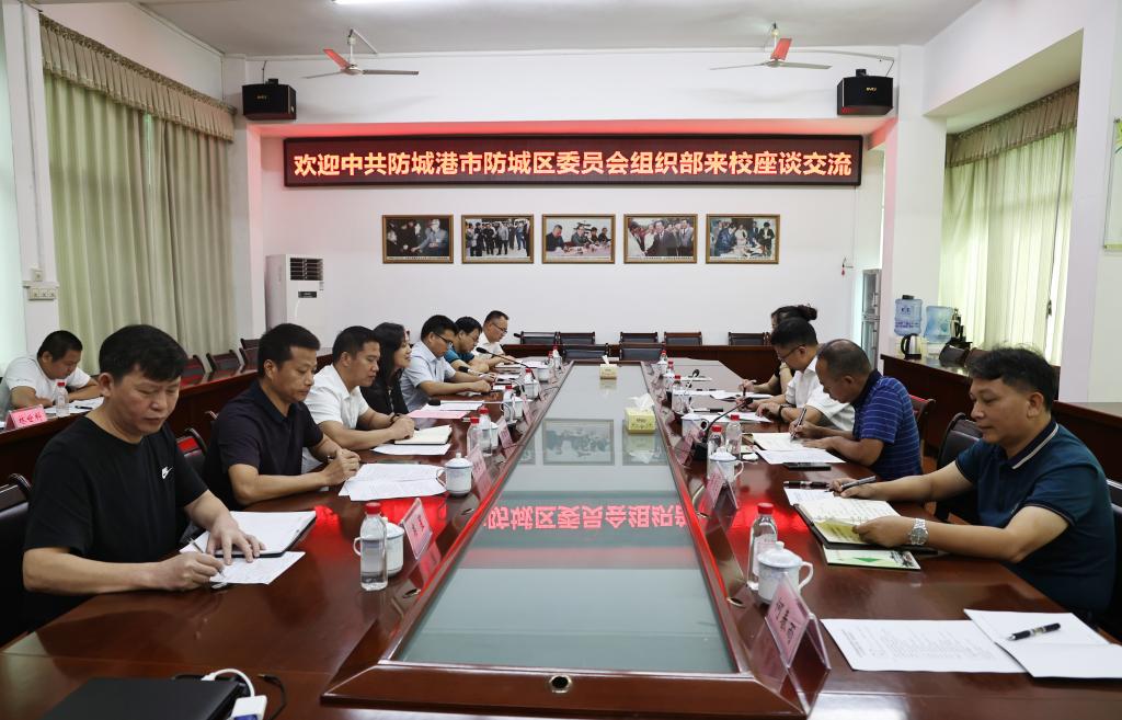 8月29日上午,防城港市防城区委常委、组织部部长甘英喜在百色市右江区委常委、组织部部长李航星的陪同下,一行6人到beat365调研,就校地合作与人才交流开展座谈。学校党委书记邓砚出席座谈会,座谈会由党委组织部副部长吕维纯主持。