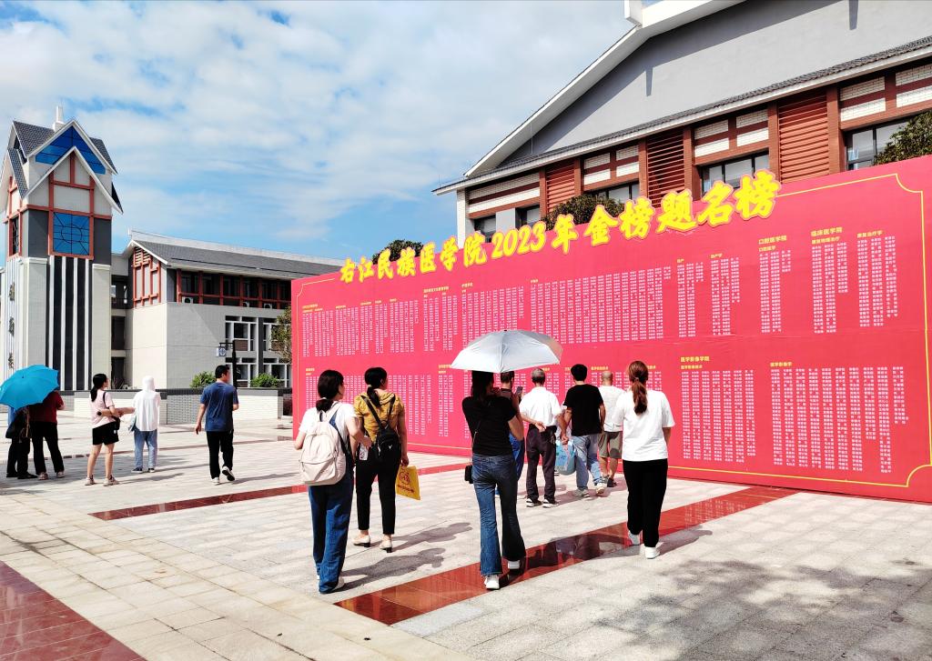 迎新现场,新生在题名墙上查找自己的名字。