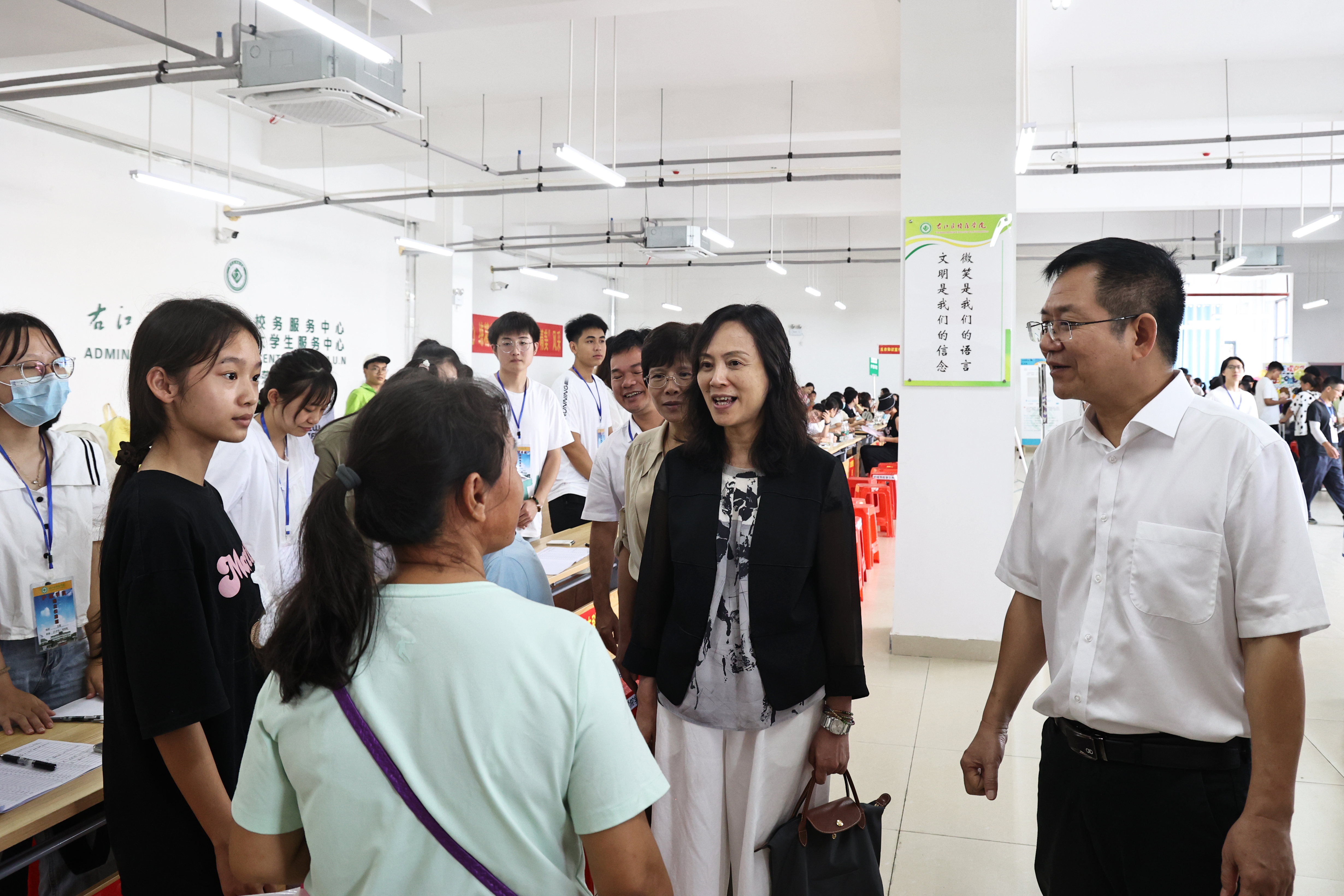 校领导在迎新现场检查工作。