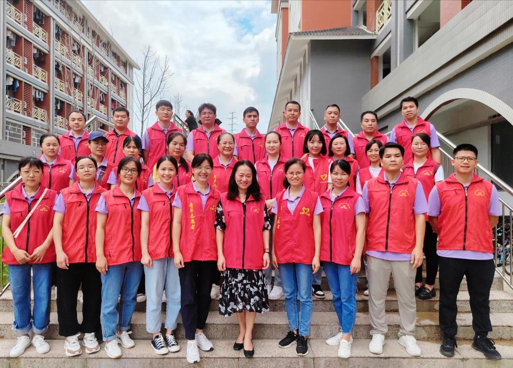 在百东校区,记者看到一群身穿红马甲的志愿者们奔波在校园内,炎炎烈日挡不住他们的热情,突入其来的秋雨止不住他们的脚步,上前一问得知,他们是临床医学院肾内科党支部和教学部党支部的老师们,此次是自发主动的为学校迎新工作助力。
