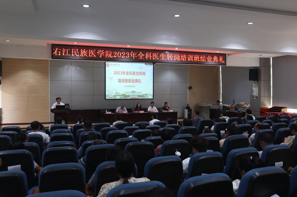2022级全科医生转岗培训学员代表赵献文发言:“医生是十分讲究术业有专攻的一门职业,此次培训班我们聚集一堂,深化理论学习,锤炼技能,在这里,我们不仅提高了专业技能和素质,还体会到了同仁之间的情义”。继续教育学院教师代表岑国芳在结业典礼中说道:“此次培训,是与临床医学院、百色市卫健委、河池市卫健委等单位及部门齐心协力,通力合作,顺利组织的转岗培训,圆满完成了各项工作及培训任务”。临床医学院教师代表黄俊玲在典礼上殷勤嘱托道:“希望各位在未来的从医生涯中,把此次培训所学的知识学以致用,为推进医疗事业的发展贡献力量。”