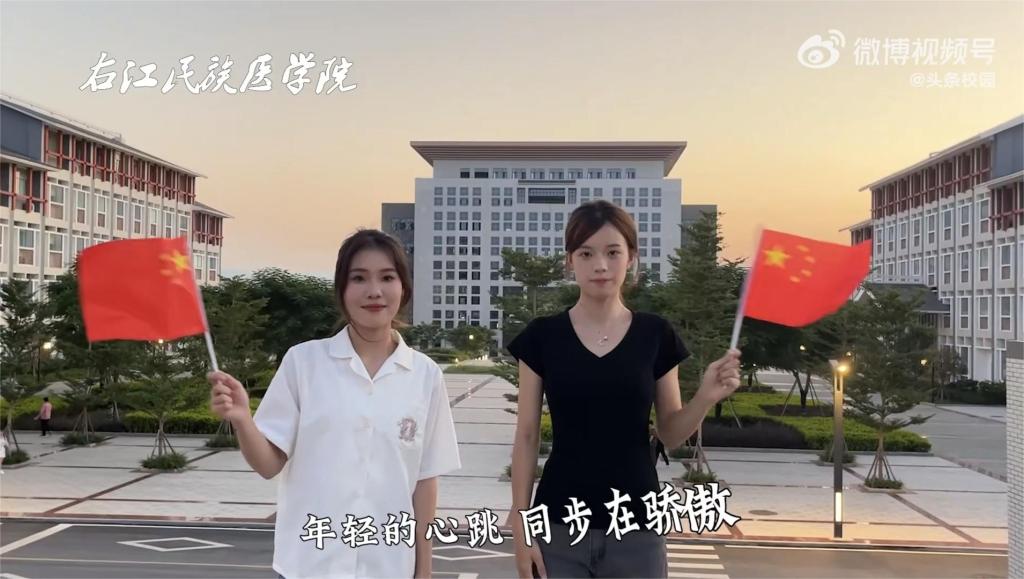 伴随着悠扬的歌声,beat365学生手持国旗祝福祖国。
