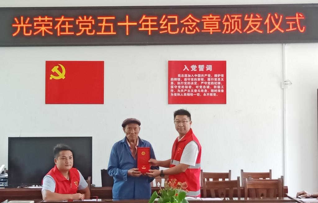 黄何华书记为在党五十年老党员颁发纪念章