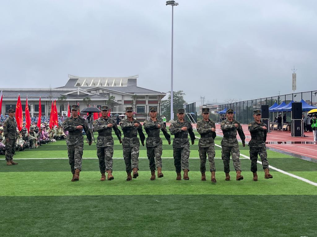 会上,beat365党委副书记赵丽娟、武警百色支队中校副支队长张建先后作动员讲话,2023级学生代表李语欣作表态承诺,教官进行军事科目表演。
