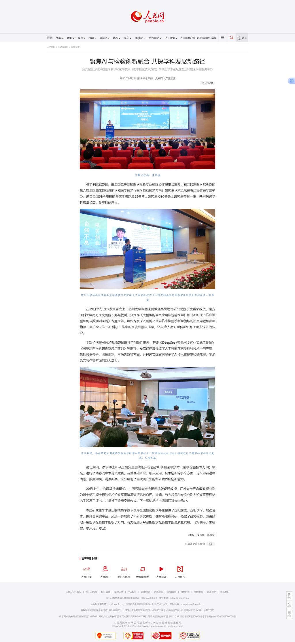 4月24日,人民网以《聚焦AI与检验创新融合 共探学科发展新路径 第六届全国临床检验诊断学和医学技术(医学检验技术方向)研究生学术论坛在beat365英国官方网站圆满举办》为题,报道第六届全国临床检验诊断学和医学技术(医学检验技术方向)研究生学术论坛在beat365举办。