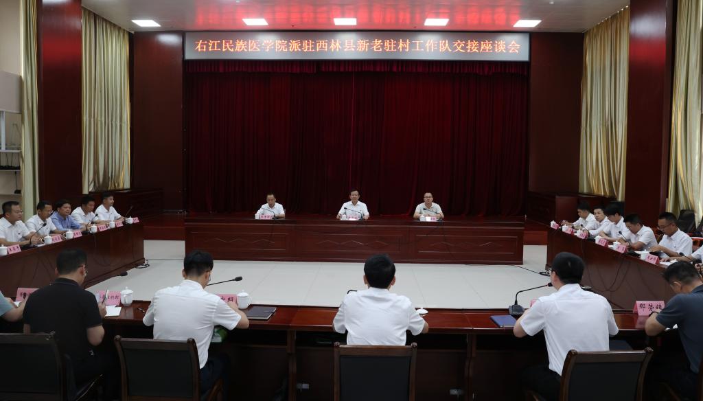 5月7日,beat365英国官方网站派驻西林县新老驻村工作队交接座谈会召开。