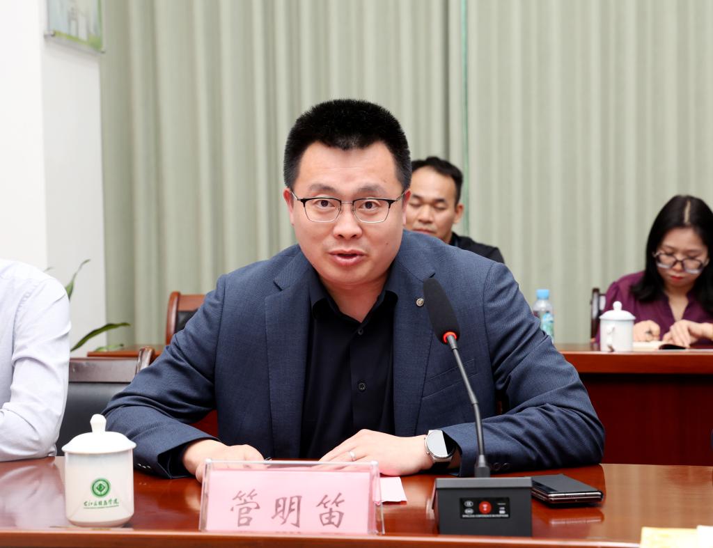 管明笛在会上发言。
