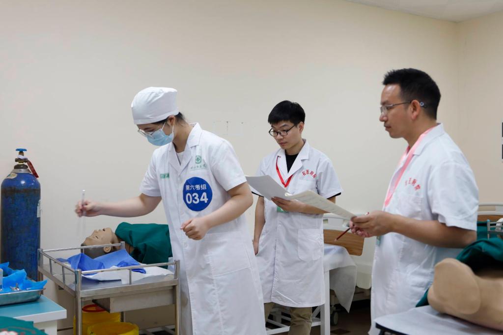 考试内容涵盖了基础医学、医学人文和临床医学等多个科目知识,旨在全面考查学生对专业知识的掌握程度和综合运用能力。技能考试则更加注重对学生临床基本操作的实践能力的检验。考试设置了多个标准化考站,包括病史采集、体格检查、基本操作等环节。在病史采集中,学生们以亲切、专业的态度与“标准化病人”进行交流,详细询问病情,展现出了良好的医患沟通能力;体格检查中,学生们操作规范、手法娴熟,对“患者”进行全面细致的检查;基本操作中,学生们沉着冷静,熟练地完成各项临床操作技能,如伤口换药、心肺复苏等,充分展示了扎实的临床基本功。