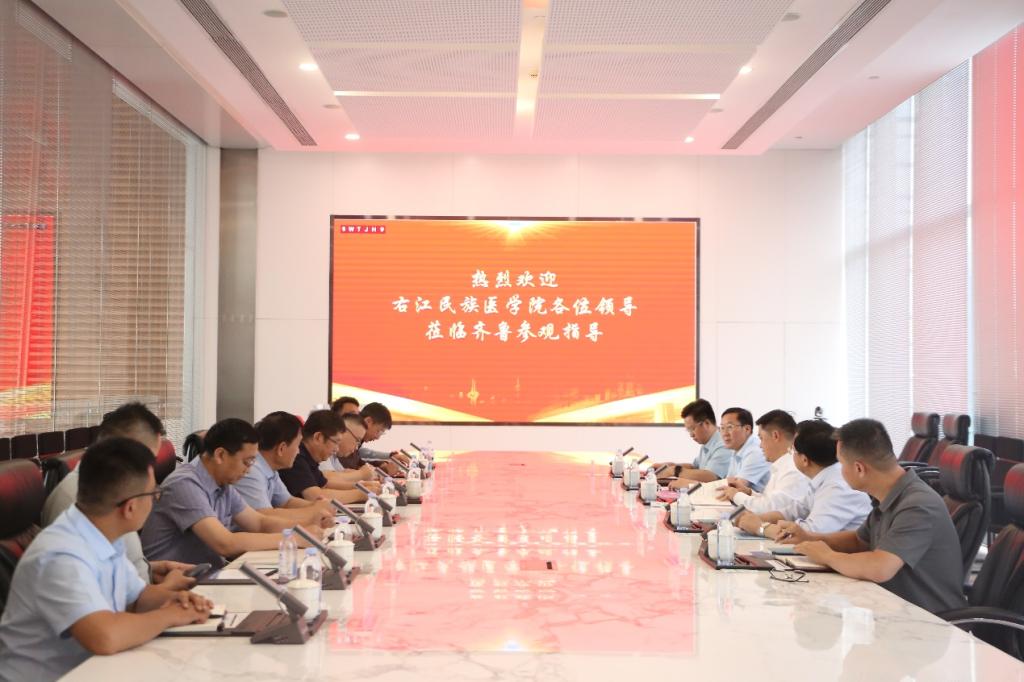 5月27日,学校党委副书记、校长黄龙坚,党委常委、副校长谭盛葵共同率科技处、两所直属附属医院代表一行5人前往齐鲁制药集团访问交流,双方就科研合作、人才培养及医疗服务等多领域达成共识,并签订了战略合作协议。齐鲁制药集团副总裁鲍海忠先生等8位领导给予了热情的接待和诚挚的交流与支持。