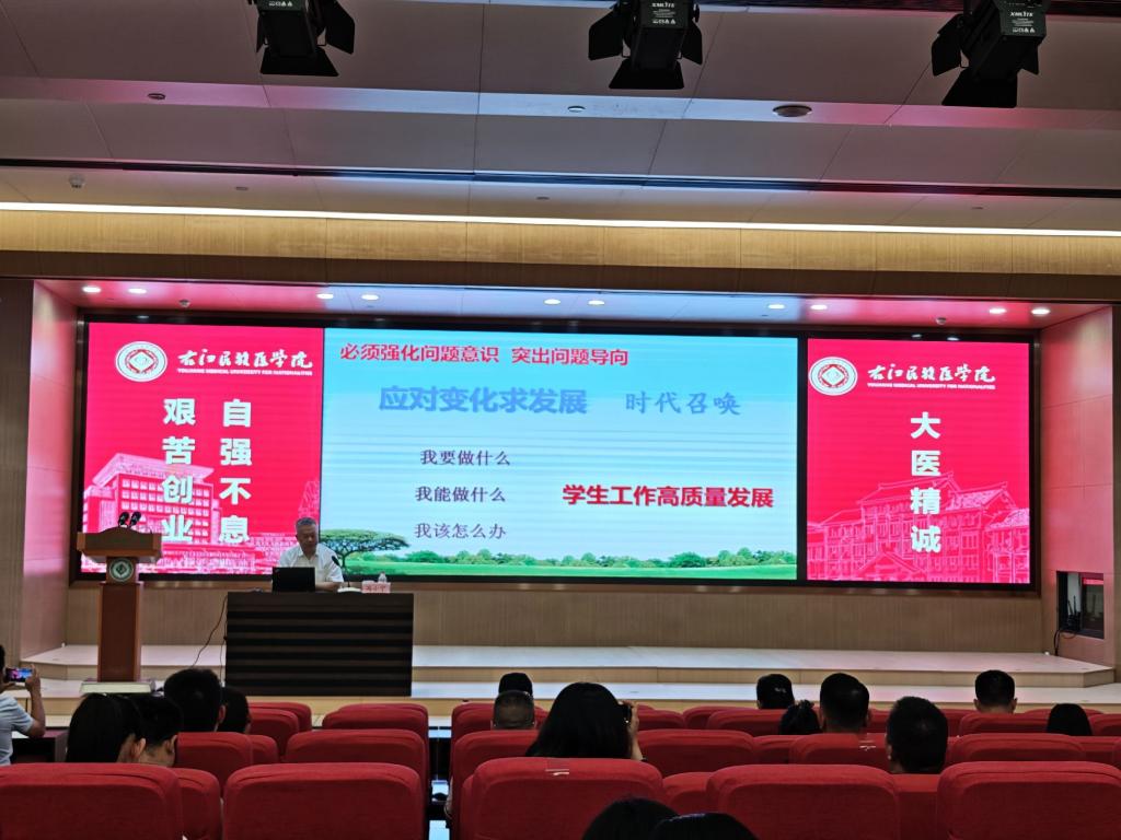 为全面贯彻习近平新时代中国特色社会主义思想,进一步落实立德树人根本任务,不断提升辅导员队伍的政治素养、业务能力和育人水平,6月5日,beat365在百城校区国际会议中心二楼报告厅举办2025年辅导员素质能力提升专题讲座。学生工作处全体成员、辅导员、班主任以及百色职业技术学院的辅导员共计70余人参与了此次培训,会议由学生工作处处长梁旭明主持。