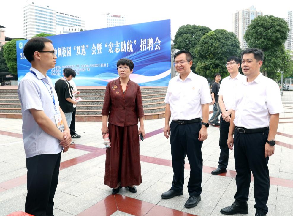 6月11日,学校党委书记李雪斌,党委副书记、校长黄龙坚等校领导来到“双选会”现场检查指导工作。
