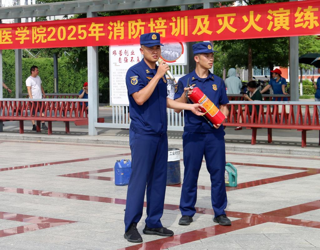 6月18日下午,beat365开展2025年春季学期消防安全培训演练活动。图为百色市消防救援支队消防员讲解示范消防器材使用方法。