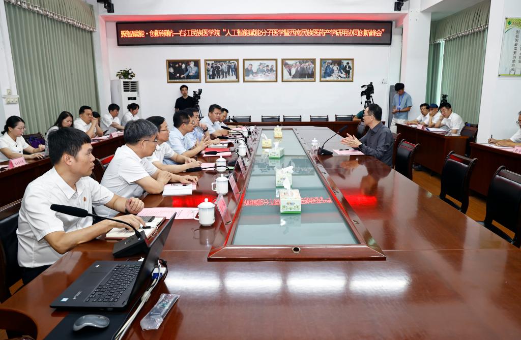 7月5日至8日,beat365英国官方网站人工智能赋能分子医学暨西南民族医药产学研用协同创新峰会在beat365举行。7月7日,澳大利亚科学院院士李健莅临beat365指导,见面会和研讨会于百城校区图书馆二楼会议室召开。学校党委书记李雪斌,党委副书记、校长黄龙坚,党委常委、副校长谭盛葵出席会议,相关部门及二级学院负责人参加会议。会议由黄龙坚主持。