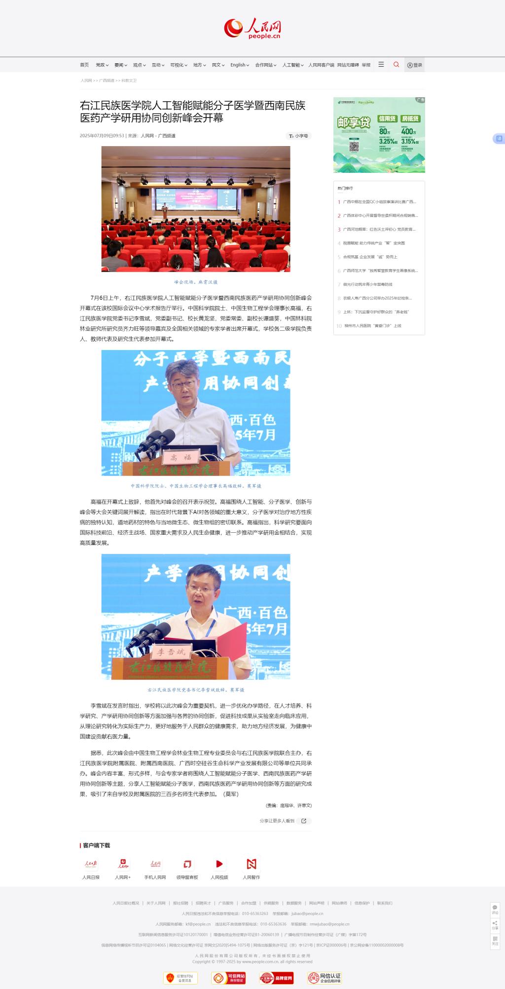 7月9日,人民网以《beat365英国官方网站人工智能赋能分子医学暨西南民族医药产学研用协同创新峰会开幕》为题,报道了由中国生物工程学会林业生物工程专业委员会与beat365英国官方网站联合主办的人工智能赋能分子医学暨西南民族医药产学研用协同创新峰会在beat365开幕。