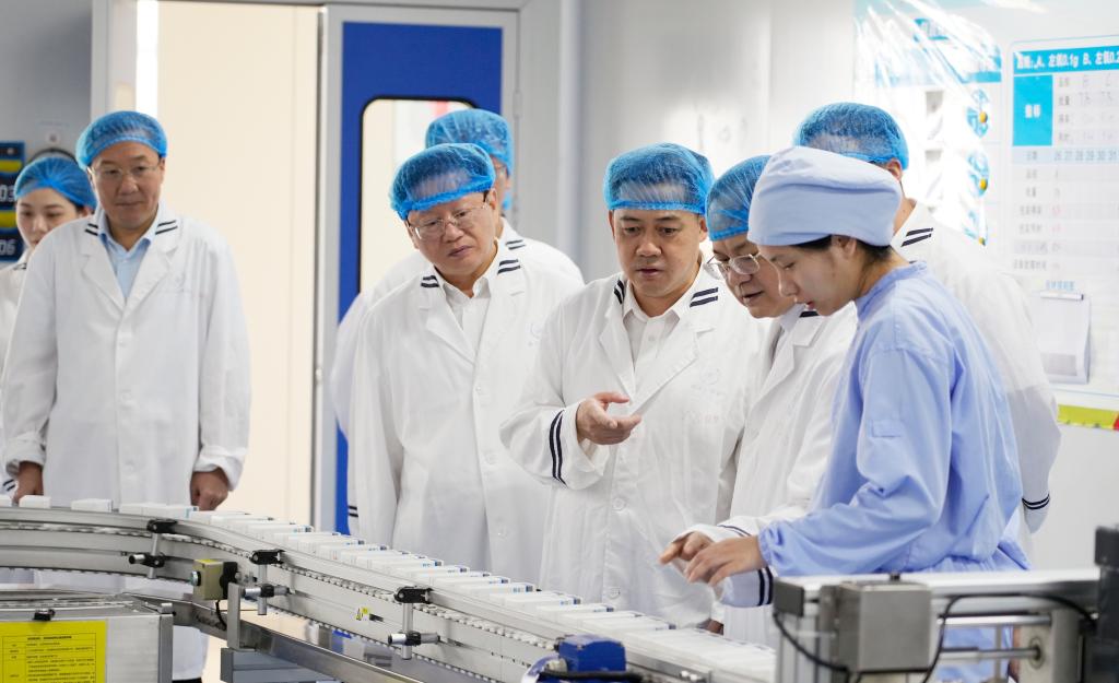 黄龙坚一行先后参观了扬子江药业集团厂区、龙凤堂厂区、大容量注射剂4号车间、龙凤堂中药展览馆和扬子江学堂等,图为参观扬子江集团厂区。