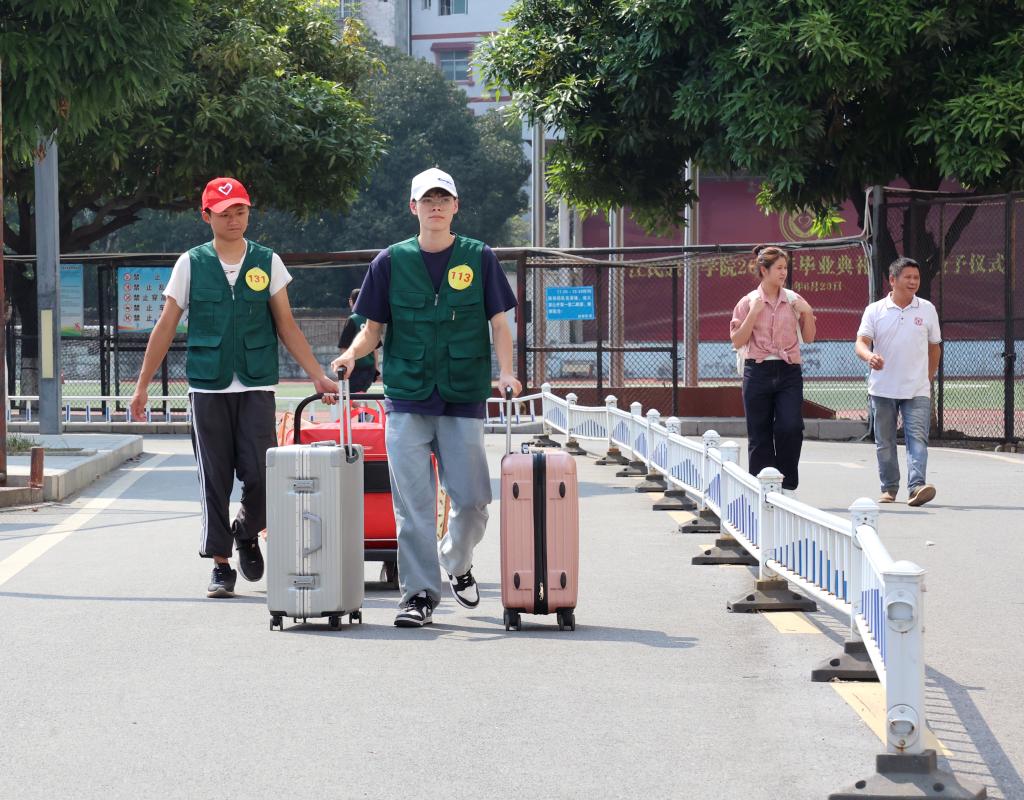 身着绿色马甲的志愿者们忙碌而有序,他们的身影穿梭于校园,主动帮扛行李、引路导航,用热情和行动让远道而来的新生与家长感受到右医大家庭的温暖。