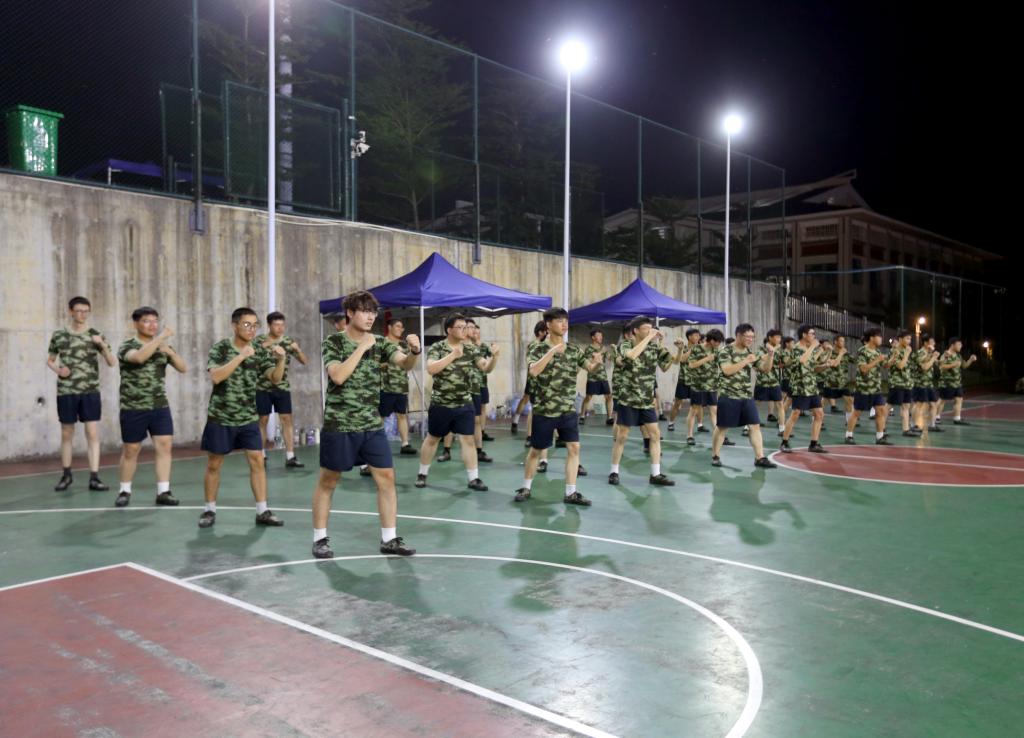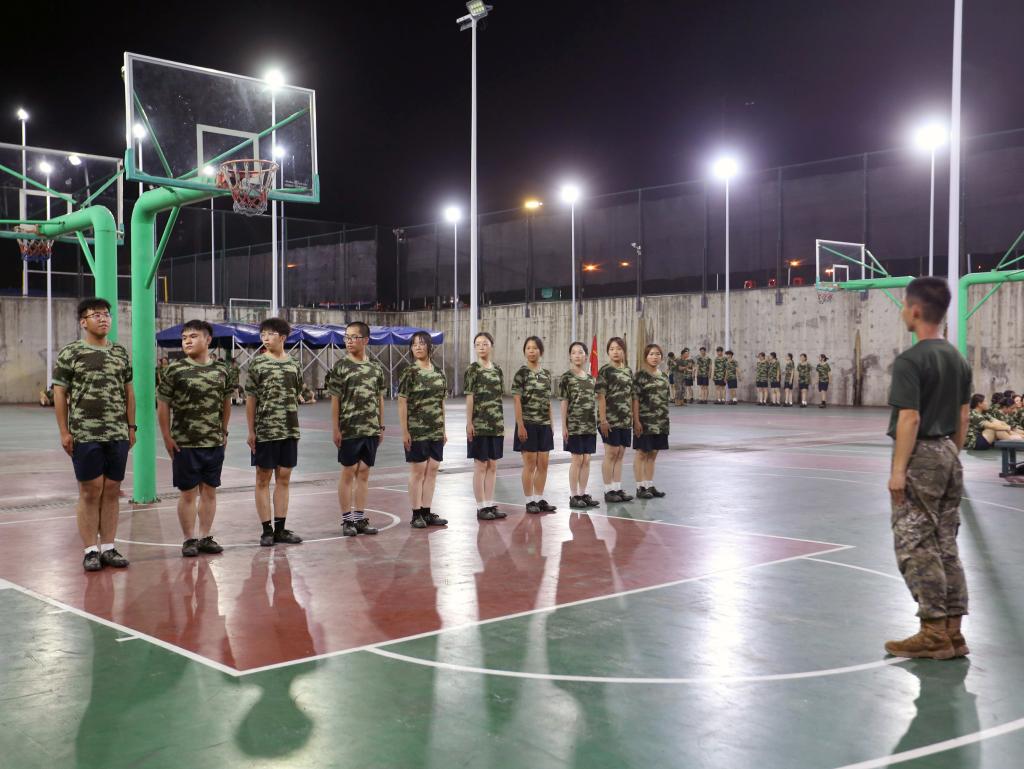 夜幕降临,嘹亮的集结哨声再次响起,同学们迅速集合,训练场上灯光如昼,映照着他们坚毅的脸庞。在经过短暂的军训成果展示后,嘹亮的军歌从训练场中传出来。随后,同学们围坐在一起,轻松、快乐地展示自己的才艺,训练场上青春洋溢。