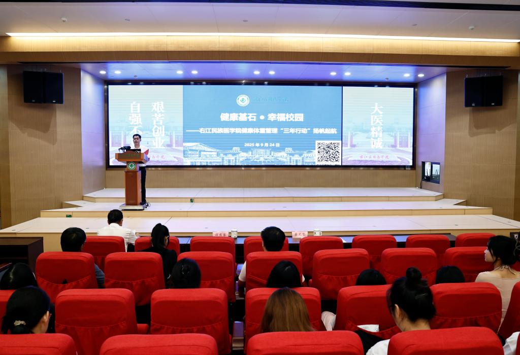 仪式上,公共卫生学院梁旭教授开展校园体重管理知识讲座,他呼吁全校师生从膳食、运动、作息三方面践行健康生活方式,养成科学的饮食和运动习惯,以健康的体魄和饱满的精神状态投入到学习和生活中。