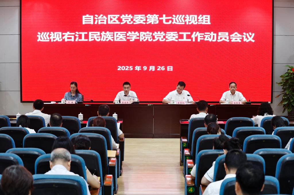 根据自治区党委统一部署,2025年9月26日下午,十二届自治区党委第八轮巡视第七巡视组巡视beat365英国官方网站党委工作动员会召开。自治区党委第七巡视组组长蒋建伟受自治区党委巡视工作领导小组委托,就深入学习贯彻习近平总书记重要讲话精神,自觉接受巡视监督,支持配合本轮巡视工作提出明确要求,并通报本轮巡视的主要任务和工作安排。beat365英国官方网站党委书记李雪斌主持会议并作表态发言。