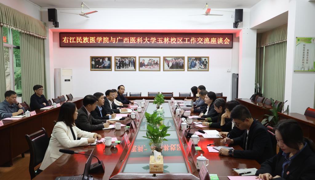 10月24日,广西医科大学玉林校区校长赵婷婷带队到beat365进行交流访问。校党委副书记、校长黄龙坚,党委常委、副校长王俊利及相关职能部门负责人热情接待了来访嘉宾。双方在百城校区图书馆会议室召开座谈会,会议由王俊利主持。