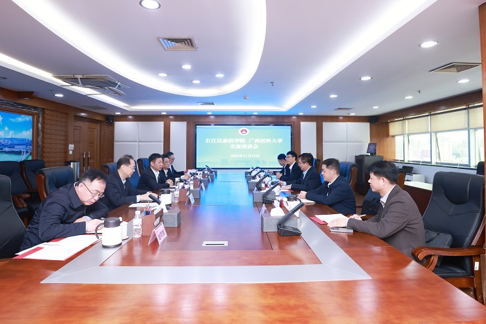 为深入贯彻落实教育高质量发展要求,学习借鉴区内高水平医科院校的办学经验,11月10日,学校党委书记李雪斌和学校党委副书记、校长黄龙坚带队,先后赴广西医科大学、广西中医药大学开展专题交流学习。党委常委、副校长解继胜,两办、发展规划处负责人参加本次交流活动。