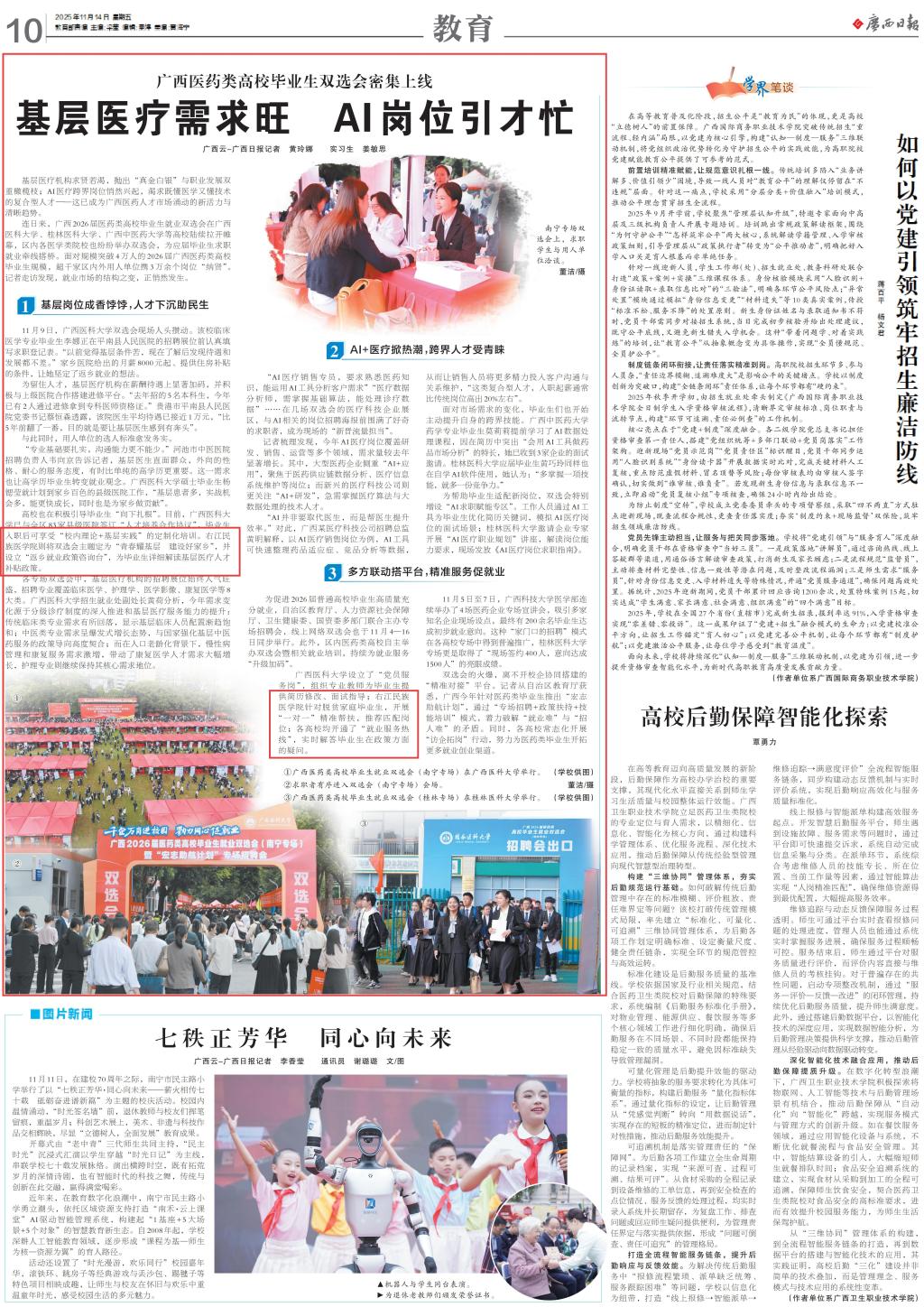 【媒体看右医】广西日报报道学校毕业生就业工作做法