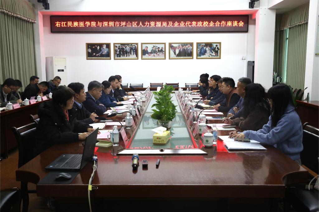 11月19日,深圳市坪山区人力资源局胡效云副局长一行8人到beat365座谈交流。学校发展规划处、招生与就业指导服务中心、教务处、科技处、团委、各二级学院及附属医院、附属西南医院负责人参加参会。