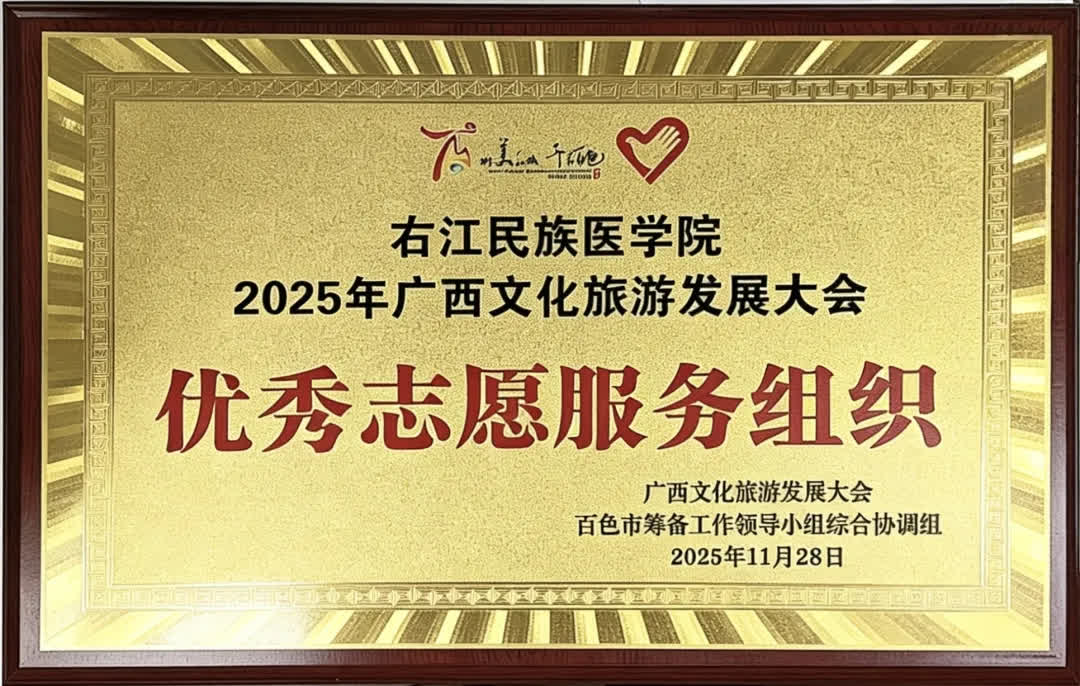 2025年11月21至25日,广西文化旅游发展大会在百色举行。beat365高度重视志愿服务工作,凭借专业、高效的服务水平,得到主办方的高度认可,荣获“2025年广西文化旅游发展大会优秀志愿服务组织”。