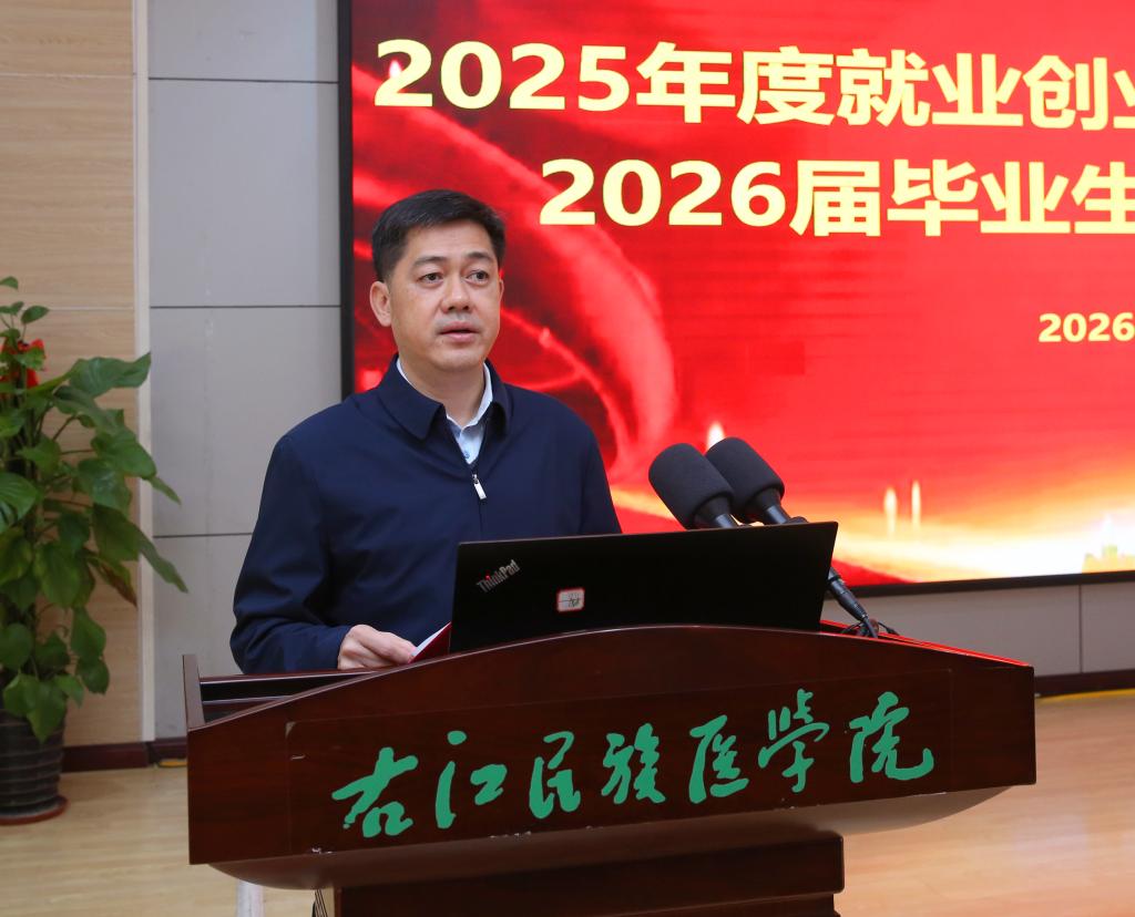黄龙坚在会上充分肯定了beat3652025年毕业生就业创业工作所取得的成绩,同时对学校2026届毕业生就业创业工作提出具体要求。他指出,各部门、二级学院要提高政治站位,强化使命担当,深刻把握就业工作新定位,深入分析研判严峻的就业形势,要切实提高政治站位,严格执行就业“一把手工程”,牢固树立“全校一盘棋”思想。要聚焦重点任务,精准施策发力,推动就业创业工作高质量发展。要构建一体化成长通道,深化访企拓岗行动,强化政校企合作,推进实习基地建设,激活校友资源潜能,用好过渡性岗位政策,促进创业带动就业,以创业带动就业,为毕业生就业开辟新路径。要将全国大学生职业规划大赛融入学校人才培养全过程,积极引导学生“早规划、早实践、早就业”,真正实现“以赛促学、以赛促教、以赛促就”。全校要加强组织保障,凝聚工作合力,确保就业任务圆满完成,要压实工作责任,加强宣传引导,严格监测考核,以久久为功的韧劲,精准施策、真抓实干,全力促进2026届毕业生高质量充分就业,为学校人才培养质量提升、“更大申博”工作推进,为建设健康广西、服务民族区域医疗卫生事业发展作出新的更大贡献。