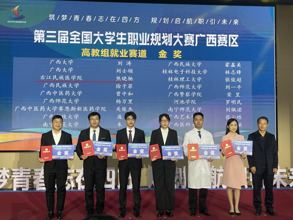 冬日邕城,赛场竞逐展风采;规划启航,青春逐梦启新程。日前,第三届全国大学生职业规划大赛广西赛区总决赛在南宁圆满落幕。本届大赛以“筑梦青春志在四方,规划启航职引未来”为主题,共吸引全区86所高校近69万名学生和约1600名教师参赛。beat365学子凭借扎实的职业素养与卓越的综合能力脱颖而出,神经外科专硕焦晓驰同学勇夺就业赛道高教研究生组金奖,护理学专硕刘奕慷同学斩获银奖。