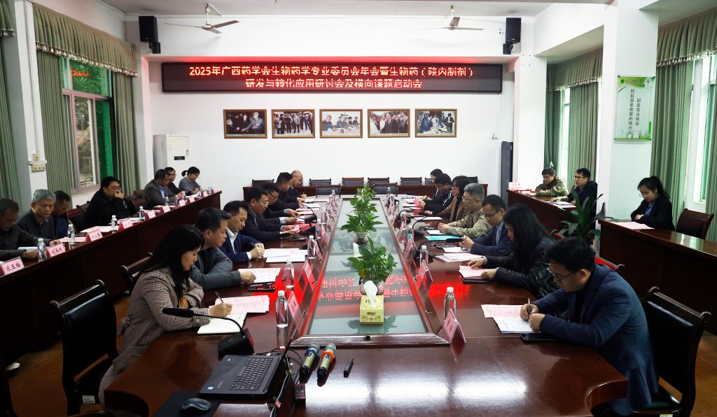 1月30日,百城校区图书馆二楼会议室内暖意融融、智慧汇聚。2025年广西药学会生物药学专业委员会年会暨院内制剂研发与转化应用研讨会、学校与中美华东制药有限公司横向课题启动会在此同步举行。来自高校、企业、医疗机构的专家学者齐聚一堂,共话药学领域创新,共探产学研用协同发展新路径。