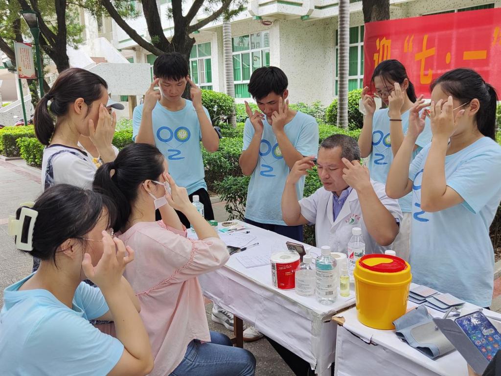 为迎接中国共产党成立102周年,庆祝学校第八次党代会胜利召开,6月30日下午,药学院教工第一、第二党支部联合在大医广场开展了“迎七一 庆党代会 关爱教职工身体健康”主题党日活动。