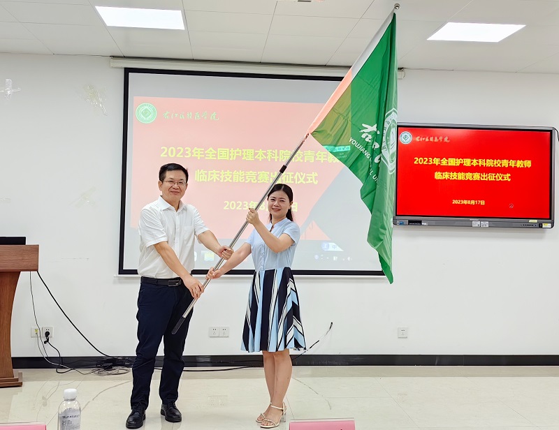 8月17日上午,护理学院在二楼大教室举行2023年全国护理本科院校青年教师临床技能竞赛出征仪式。学校党委副书记、校长李雪斌教授出席,教育评价与教师发展中心韦荣耀副主任、护理学院党委黄上峰副书记、教育评价与教师发展中心舒方义科长、参赛指导老师以及参赛选手参加,仪式由护理学院党委黄上峰副书记主持。