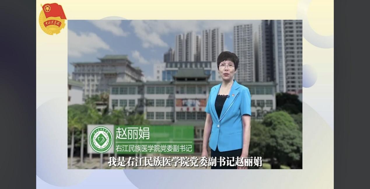 赵丽娟副书记分享了beat365扎实推进党建带团建,创新社会实践育人新路径的做法:一是突出红色文化教育,促进社会实践教育常态化,传承守护祖国卫生南大门的红色基因,学校通过组织开展清明祭英烈扫墓、“杏林风”道德讲堂等“交互式”“沉浸式”红色实践活动,让学生深入了解百色起义的历史,学习邓小平同志等老一辈革命先烈的坚定信念和革命精神,挖掘红色故事、接受红色教育、体悟红色文化、传承百色起义精神。二是突出专业知识教育,促进社会实践服务专业化,提升守护祖国卫生南大门的专业技能,学校坚持党建带团建,通过“三定”,即定目标、定任务、定项目,推动青年学生社会实践与医学专业紧密结合,主动用专业知识服务广大群众,不断提升青年学生的医学专业技能。三是突出创新创业教育,推动社会实践活动特色化,提升守护祖国卫生南大门的信心信念。学校持续强化需求导向,提高办学定位、人才培养目标与社会需求的适应度,坚持党建带团建,将创新创业教育融入社会实践中。红色文化教育、专业知识教育、创新创业教育融入社会实践,形成了“三突出三促进”社会实践育人模式,引导广大右医青年积极投身社会实践中成长成才,成为守护祖国卫生南大门的生力军。