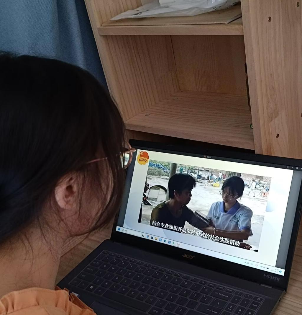 22健管1班的韦佳茵认为“青年者,人生之玉,人生之春人生之华也。”我们这一代人,生逢盛世,重任在身,于人生定向之时,当立鸿鹄之志,让青春之花绽放在祖国最需要的地方,在实现中华民族伟大复兴的接力跑中,跑出我们的精彩。通过观看学习,我领悟“三突出三促进”社会实践的意义,拓宽了右医学子的知识面,提高了他们的实际能力和综合素质,引导我们积极投身社会实践中成长成才,成为守护祖国卫生南大门的生力军,让青春在祖国和人民最需要的地方绽放绚丽之花。