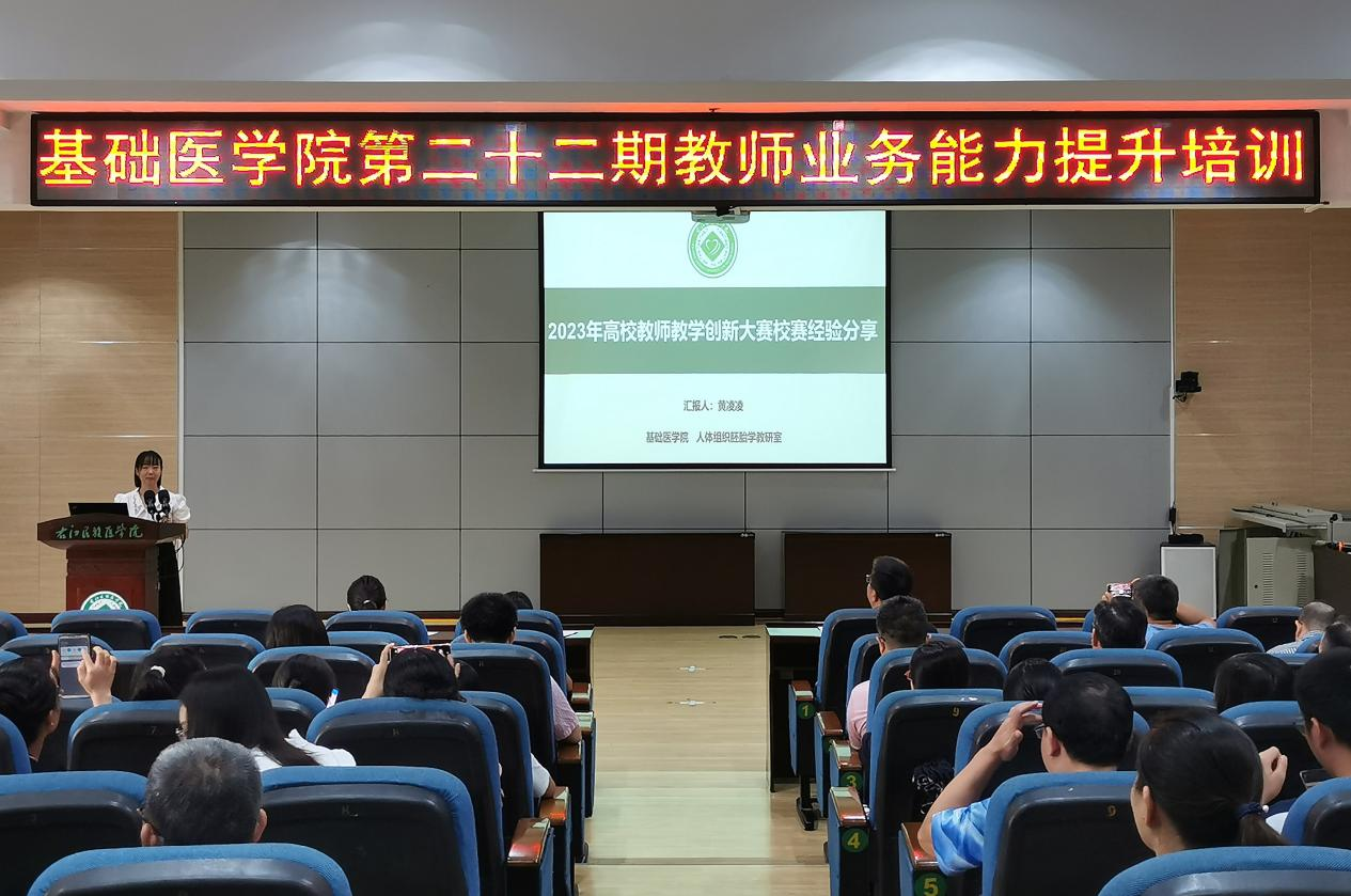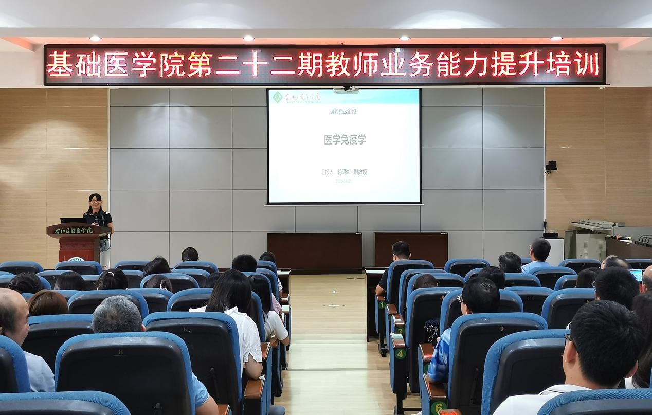8月25日,基础医学院在5-101举办第二十二期教师业务能力系列培训。本次培训由基础医学院人体组织胚胎学教研室黄凌凌博士、病原生物学与免疫学教研室陈源红副教授两位教师主讲,全体基础医学院教职工参会学习。