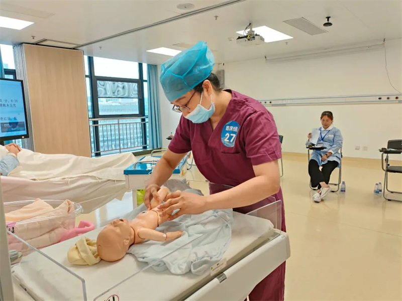 附属医院百东院区妇产科护士长朱小英在进行技能实操