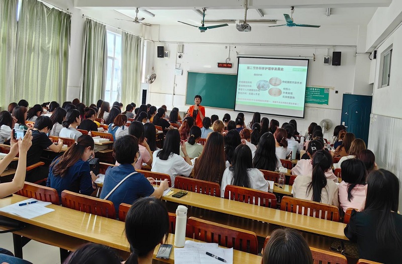 本次活动授课内容为国家级一流课程《外科护理学》的第一章“绪论”。罗前颖教授通过视频导入,精讲外科护理学的概念与范畴、发展史、指导思想、外科护士具备的素质等内容,引导学生学习真本领,践行“人民至上、生命至上”的决心;并通过重温南丁格尔精神,强调学生,作为护理学子,更要深刻领会护理工作的神圣与职责,努力学好专业知识,担负起时代赋予的重任,做一名新时代合格的护理人员。