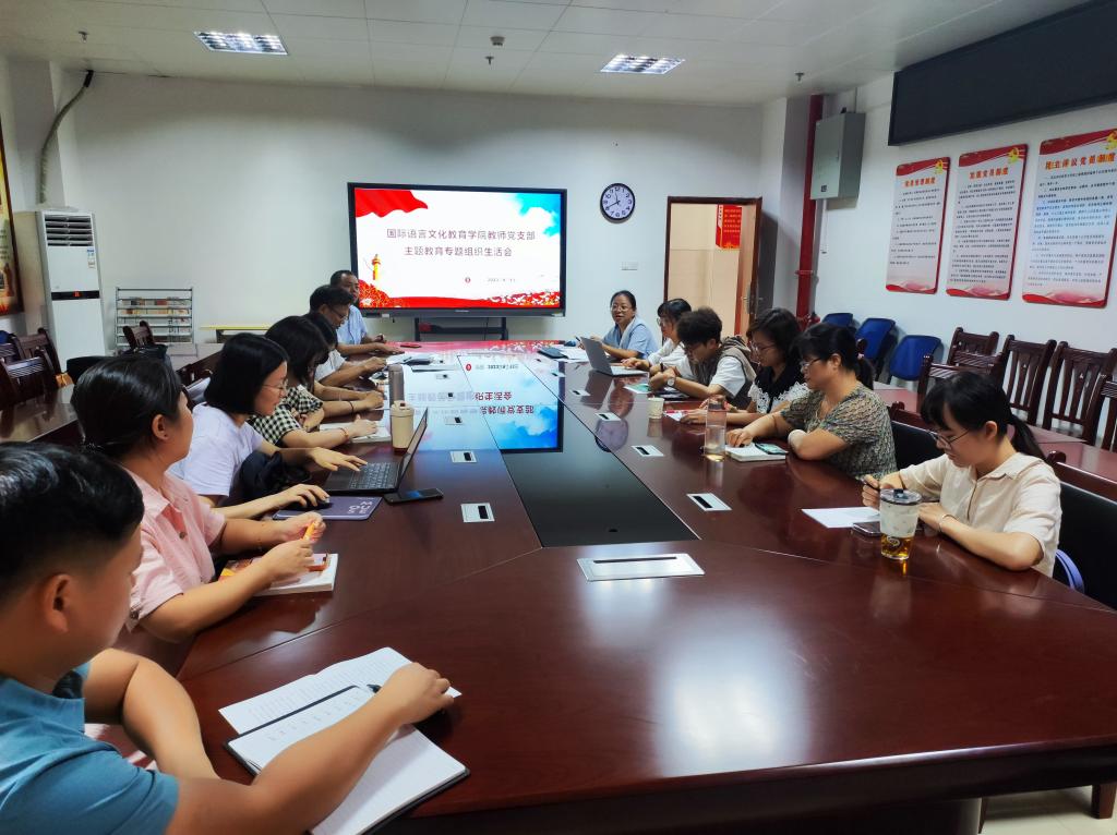 根据学校党委《关于召开学习贯彻习近平新时代中国特色社会主义思想主题教育专题组织生活会的通知》精神,在充分的前期准备和广泛调研的基础上,9月13日下午,国际语言文化教育学院教师党支部组织党员召开了主题教育专题组织生活会。本次会议由支部书记李金艳主持,全体党员参加。