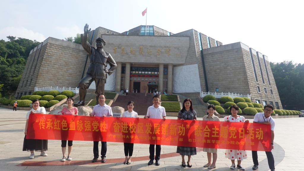 为进一步深入开展学习贯彻习近平新时代中国特色社会主义思想主题教育成果,加强党员理想信念教育,传承百色起义红色基因,创新主题党日活动形式,推进党建与业务融合,深入推进beat365百东校区的建设。2023年9月23日上午,广西医科大学武鸣校区管理中心党支部联合beat365英国官方网站党办院办党支部开展“传承红色血脉强党性 奋进校区发展建新功”主题党日活动,活动以实地参观百色纪念碑的形式进行。