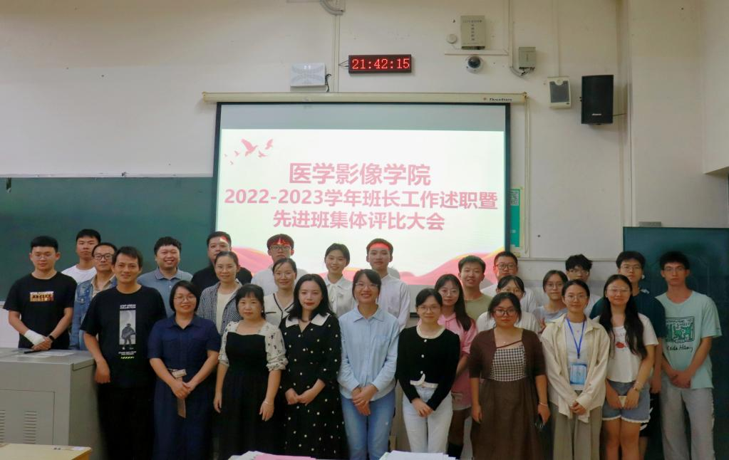 为推动“三红”育人校园文化育人品牌建设,加强各班级工作交流,充分发挥先进典型作用,营造良好的班风、学风和校风,增强同学们的责任意识、服务意识和大局意识,医学影像学院于2023年10月15日晚开展了2023年班长述职评议大会暨2022-2023学年先进班集体评比大会。学院全体辅导员及各班班主任,以及学院各组织、各班级学生代表参加会议。