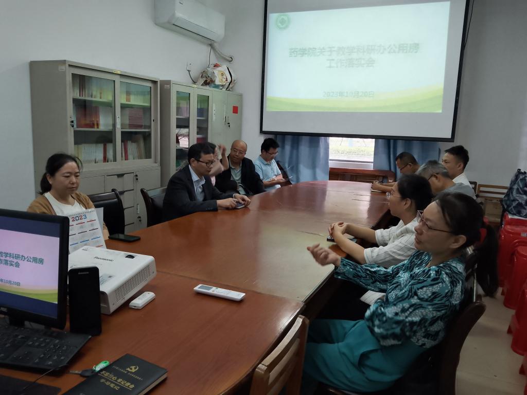 10月20日上午,药学院在百东校区知行楼E204召开校本部科研用房及精诚楼开放实验室管理制度讨论会。药学院院长韦贤主持会议,药学院各教研室主任、博士参加会议。