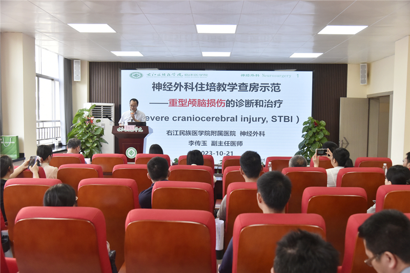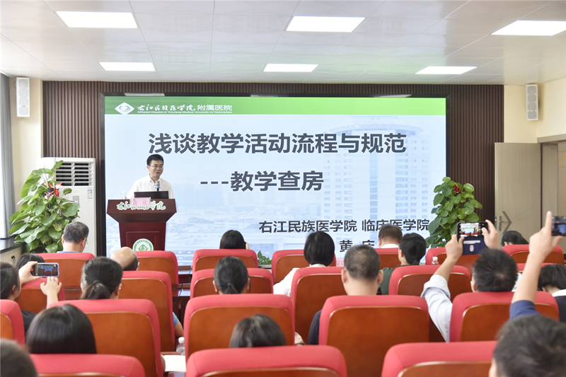在各分会场,右医附院黄庆副教授、李传玉副教授、左瑶副教授、王春芳教授、黄德尤教授和覃莹莹副主任护师分别作了《浅谈教学活动流程与规范——教学查房》、《神经外科住培教学查房示范——重型颅脑损伤的诊断和治疗》、《教学查房》和教学查房模拟演练、《检验医学实习教学与管理经验分享》、《医学影像实习带教》、《新形势下护理实习生带教模式改革探索》护理实习带教讲座和护理教学查房示范演示等专题讲座。各授课教师和工作坊成员结合专科内容进行专题讲座、教学查房示范演示、实习带教经验交流和总结,为右医附院、附属西南医院新入职教师、非直属附属医院培养学生和教师带教等方面提供了宝贵经验,对今后学校开展教学改革、提高教学质量具有促进作用。