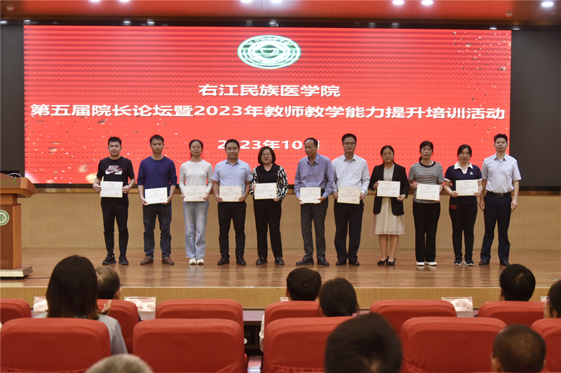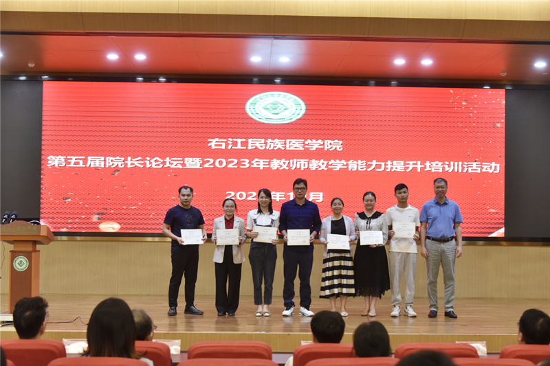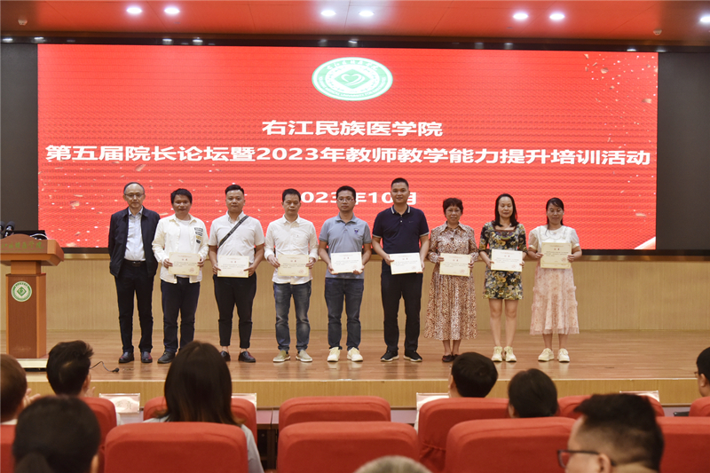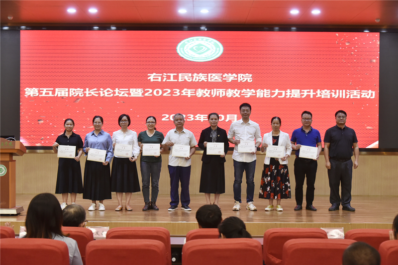 教学查房培训结束后,全体教师前往beat365英国官方网站国际会议中心二楼学术报告厅参加结业证书颁发仪式。beat365英国官方网站党委常委、副校长王俊利,右医附院杨发奋副书记、潘征副院长、蓝常贡副院长、邓益斌副院长为授课专家及beat365英国官方网站直属附属医院、附属西南医院新入职教师和非直属附属医院授课教师颁发结业证书。