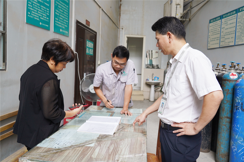 2023年10月23日下午,为切实做好全市卫生健康系统安全生产、消防安全工作,百色市卫生健康委副主任罗雪梅率督查组一行来到右医附院开展百色市卫生健康系统第四季度全市卫生健康系统安全生产和消防安全大检查。右医附院蓝常贡副院长、相关部门负责人及工作人员陪同检查。